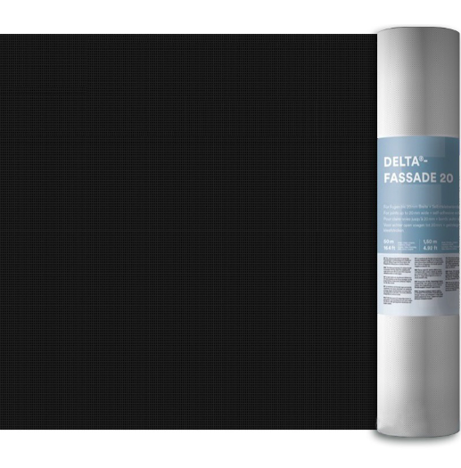 - Одна из современных тенденций устройства фасадов – применение материалов со щелями в облицовке. Фасадные покрытия с открытыми стыками из дерева или металлических перфорированных панелей / сеток предлагают привлекательные варианты дизайна. Однако они означают большое количество грязи и влаги для нижележащего слоя теплоизоляции. В этих случаях ветрозащитный слой должен обладать повышенной стойкостью к УФ-излучению, ветровым нагрузкам и внешним осадкам. При этом диффузионная способность плёнки должна быть достаточной, чтобы беспрепятственно удалить влагу из утеплителя. Обычные ветрозащитные мембраны не будут обеспечивать надёжность и долговечность, поэтому мы разработали специальные материалы для подобных конструкций: они сочетают высокую прочность при растяжении и надрыве, пластичность, стойкость к УФ-облучению, и при этом обладают отличной диффузионной способностью (Sd=0.02 м). Нетканые основы для наших фасадных плёнок изготавливаются с использованием технологии «двухслойного волокна сердцевина-оболочка» DELTA-BiCo. В отличие от классических нетканых материалов, волокна BiCo состоят из двух компонентов сырья, один в сердцевине и один в оболочке. Это позволяет повысить прочность, термическую и УФ-стабильность волокон. Результатом является продукт с непревзойдёнными характеристиками за счёт использования специальных добавок в сердцевину и оболочку. DELTA-FASSADE 20 PLUS/DELTA-FASSADE 20 являются ветрозащитными мембранами для вентилируемых фасадов с открытыми швами в наружной облицовке шириной до 20 мм (общая площадь открытых щелей не должна превышать 20% от площади всего фасада). Плёнки имеют матовую поверхность чёрного цвета без надписей и маркировки. Высокая прочность и большая масса плёнок предотвращают их акустическое колебание в вентилируемом канале фасада. DELTA-FASSADE 20 PLUS имеет две интегрированные зоны проклейки по краям рулона. Благодаря высокой и постоянной термической стабильности и полному отказу от добавления природных смол, клеевое соединение подкровельного слоя является долговечным и экстремально надёжным даже при давлении талой воды и значительных перепадах годовой температуры. До 2021 эти мембраны имели обозначение DELTA-FASSADE PLUS/DELTA-FASSADE.