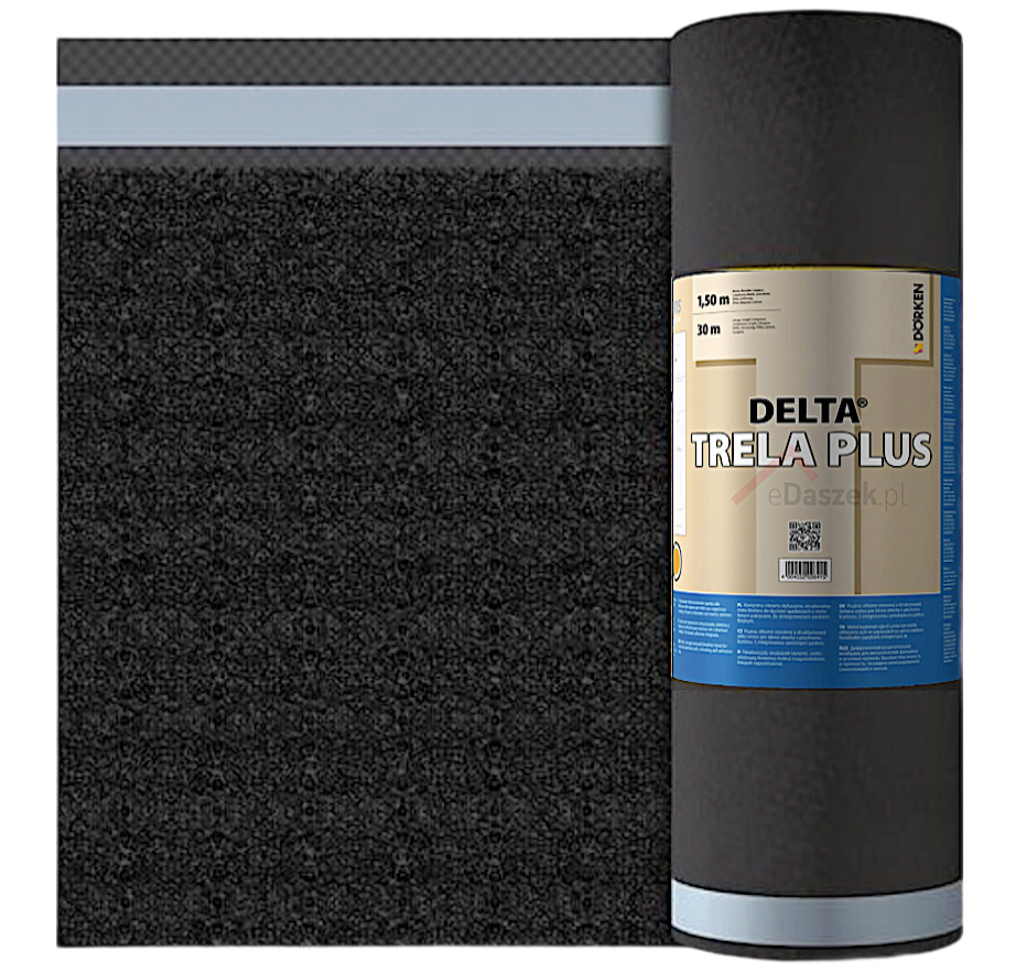 - DELTA-TRELA PLUS объёмная диффузионная мембрана/структурированная разделительная прослойка (ОДМ-объемная диффузионная мембрана) используется с металлическими фальцевыми и штучными кровлями (из стали, меди, цинка, алюминия) и с фасадами, облицованными металлом. Обеспечивает скольжение металла при температурных деформациях. Трёхмерная структура высотой 8 мм из ориентированных волокон препятствует образованию конденсационной влаги на нижней стороне металлической кровли. Благодаря постоянному отводу конденсата мембрана эффективно защищает кровлю от коррозии.