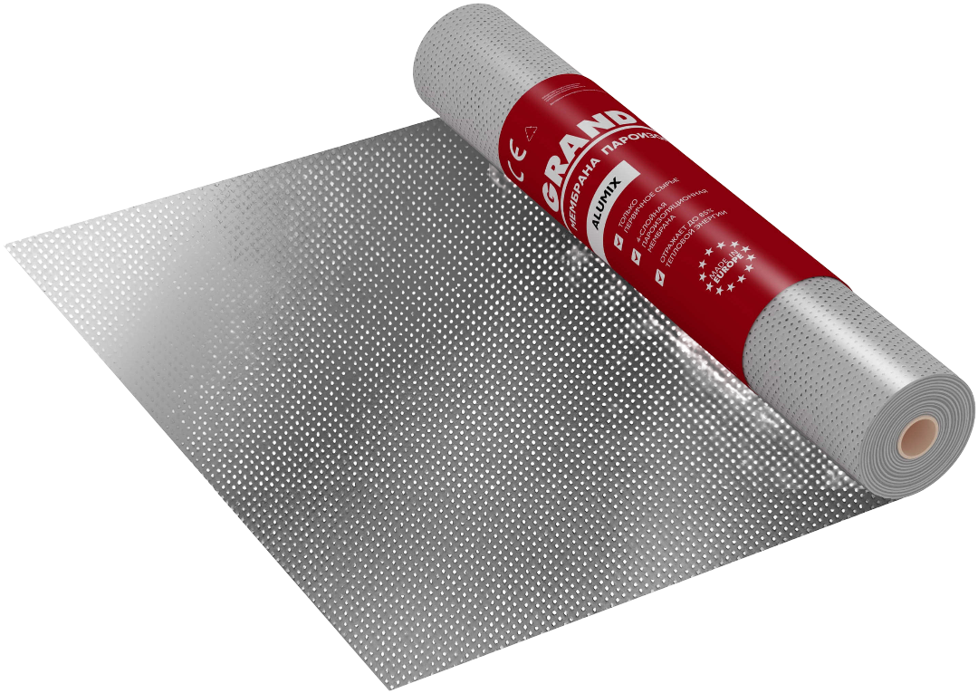 Пленка пароизоляционная Grand Line Alumix - это двухслойная пароизоляция с ограниченной паропроницаемостью, обеспечивает экономию тепловой энергии за счет отражения инфракрасного излучения. Пленка выполнена из нетканого полипропилена в сочетании с низкодиффузионной полипропиленовой пленкой и алюминиевым слоем.