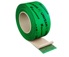Eurovent UNISAN – это специальная односторонняя клейкая лента, изготовленная из PE-пленки, усиленной полиэфирным волокном, и специального клея на основе акриловой дисперсии. Применение: широкий спектр, включая склеивание и ремонт материалов из пластмасс, таких как паропроницаемые и паронепроницаемые мембраны, и их склеивание с древесиной и металлическими элементами. Поверхности склеиваемых элементов должны быть сухими и чистыми. Температура применения мин./макс.: +5°C до +40°C. Лента Eurovent UNISAN получила сертификат Passiv House Institute в классе герметичности phA.